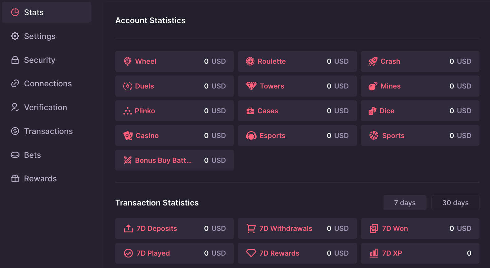 Showing deposits, withdrawals, and gameplay by product helps players understand exactly where their money goes.
