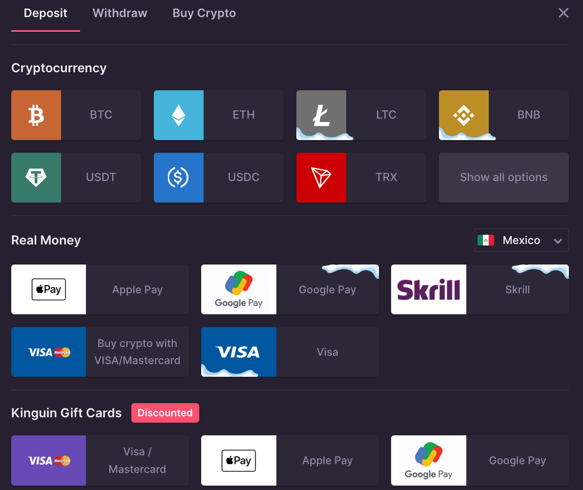 Casinos use the term “Cashier” when it leads to multiple money-related actions: Deposit, Withdrawal, Buy Crypto.