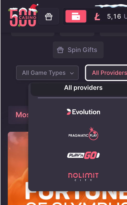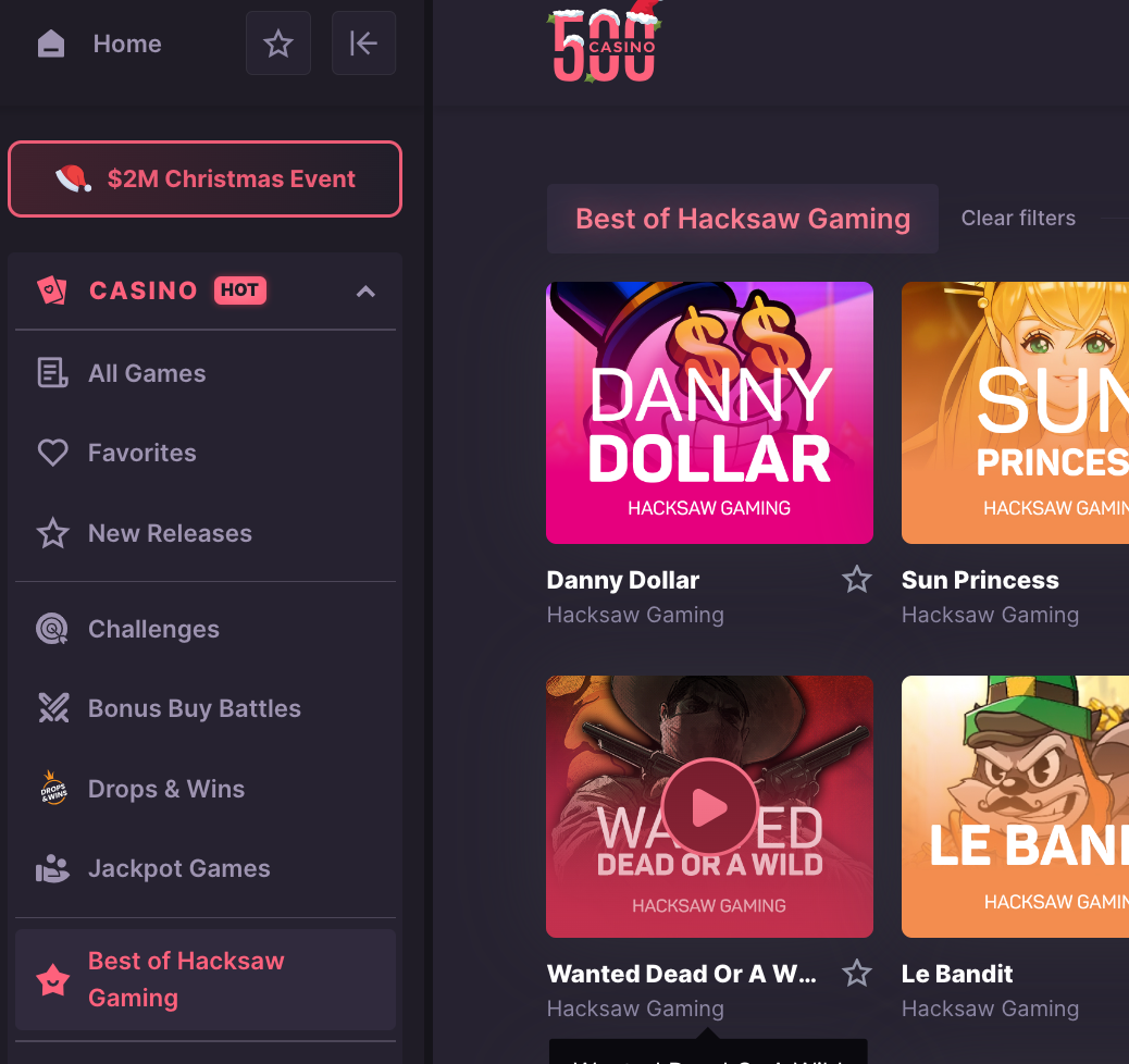 Very nice example of commercial partnerships expressed through UX. 500 Casino visibly integrates partners into the product via dedicated categories and of course gets better deals with them (like good discount on commission fee).
