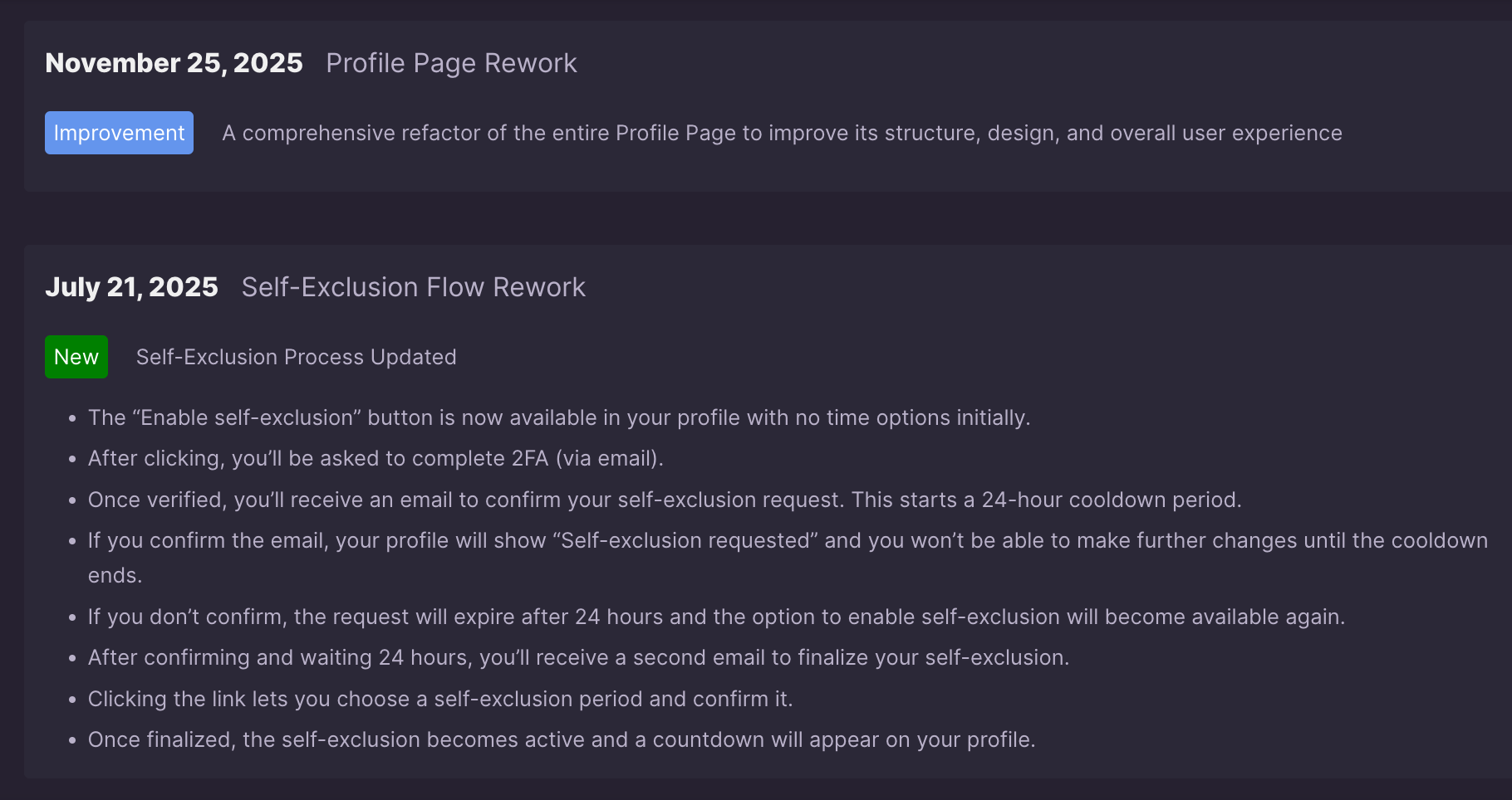 Users can see: new features, product changes, game additions.