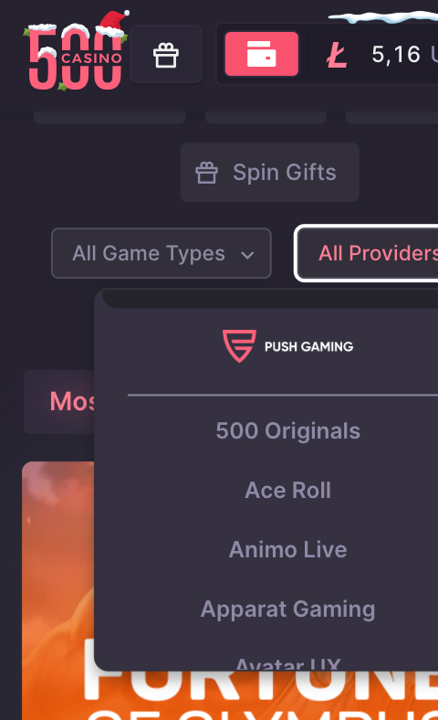 + Original (Classic) games: Most titles are developed by the Origami game provider, yet they feel like native, in-house games. This is a solid strategy: instead of spending resources on building originals from scratch, 500 Casino integrates high-quality Origami games and presents them as part of its core product.