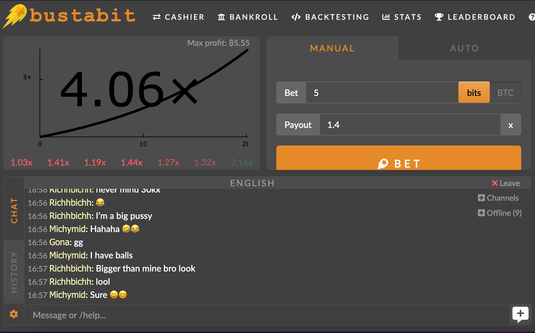 Launched in 2014, Bustabit was the first-ever crash gambling site.