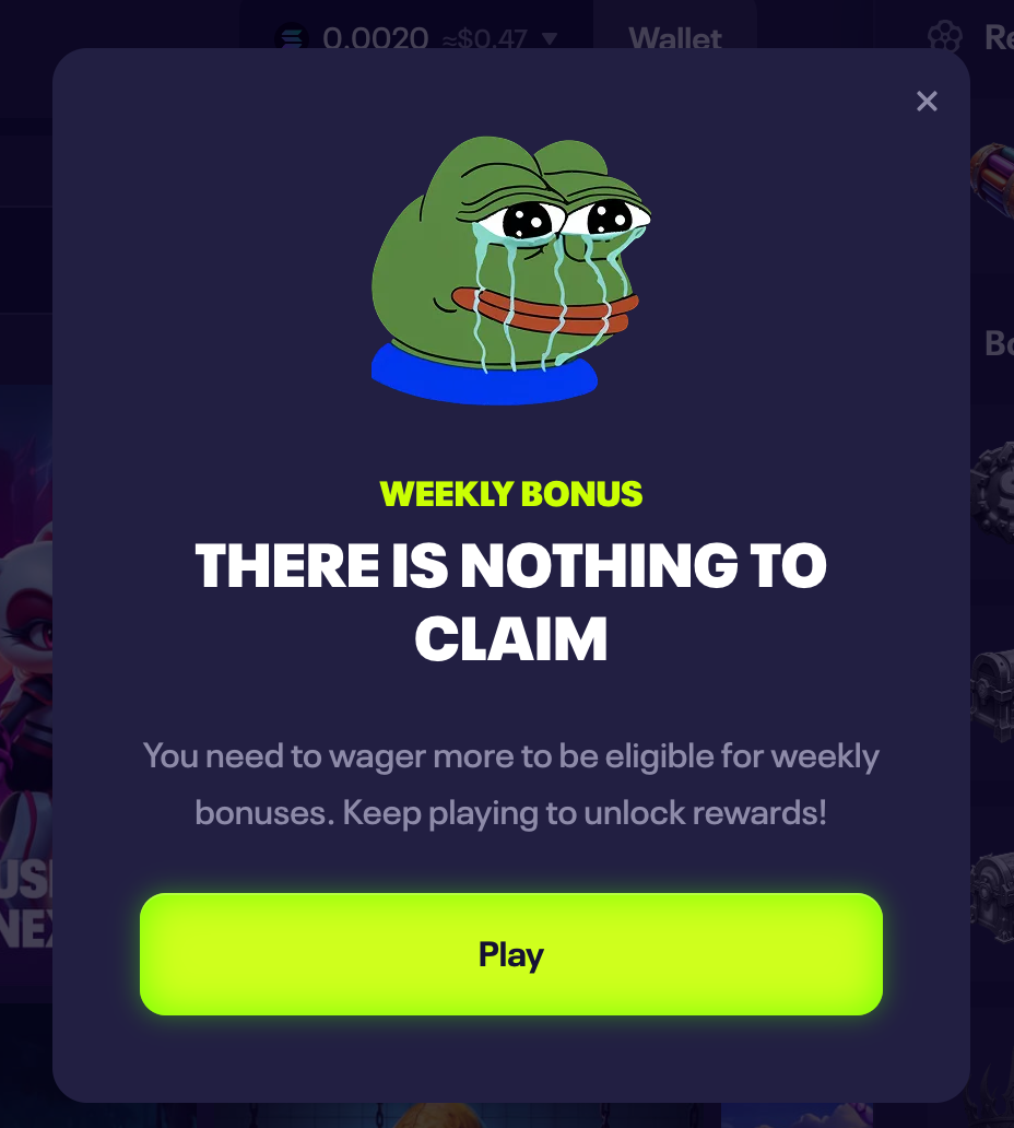 This is a new Crypto casino launched in May 2025. It's a decentralized casino running on the Solana blockchain, a platform fully focused on the Solana community.