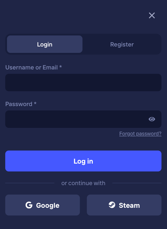+ Email, Google, and Steam.