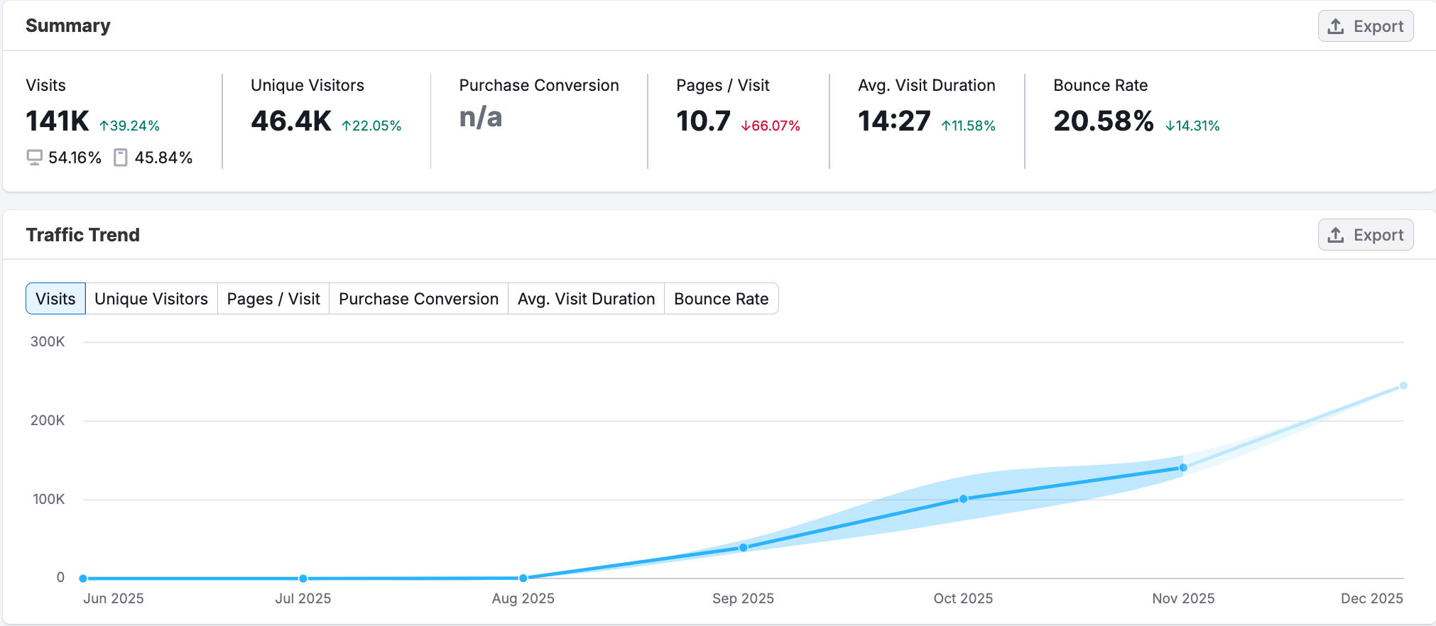 + Device split: 54% desktop, 46% mobile