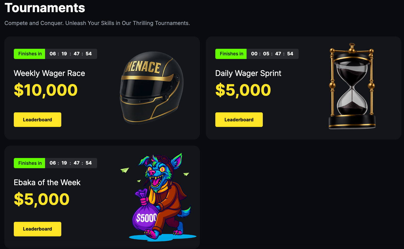 + Ebaka weekly wager promo. Prize pool: $5,000