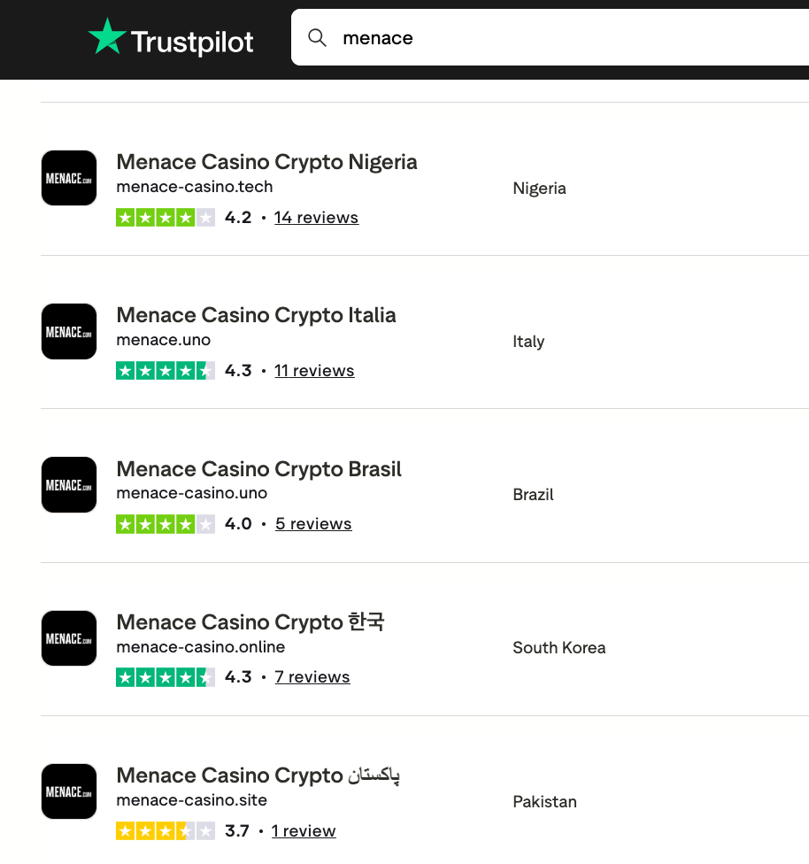 - Multiple mirror domains + separate Trustpilot profiles by country