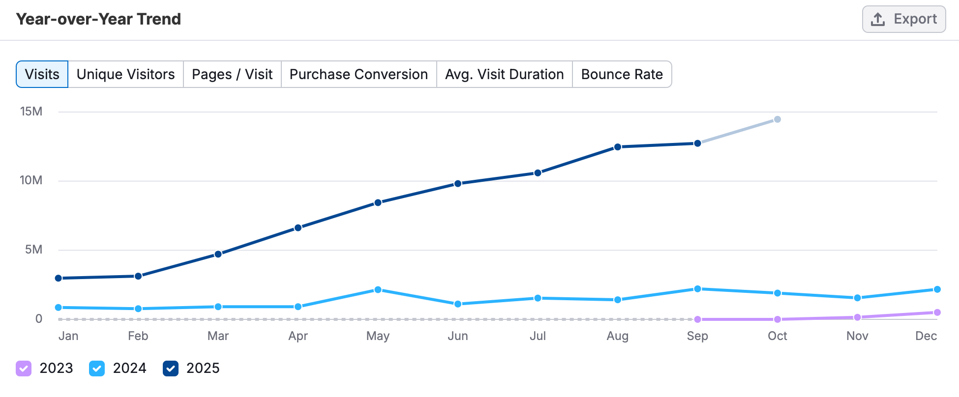 You can clearly see how Rainbet’s traffic skyrocketed in 2025 compared to 2024.