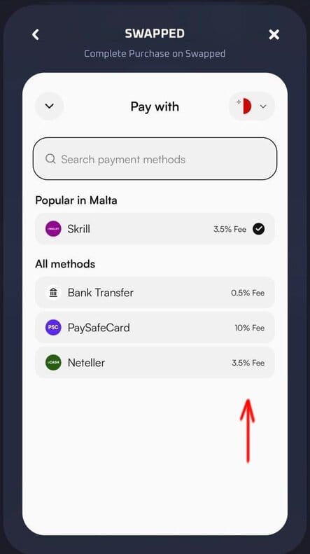 + Offers Buy Crypto + wallet deposits via Swapped.