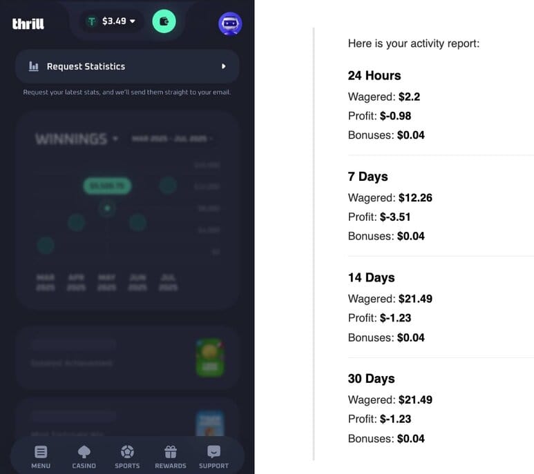 I expected a richer breakdown, for example: total withdrawals, number of bets, and maybe top 1–2 biggest wins / games.
