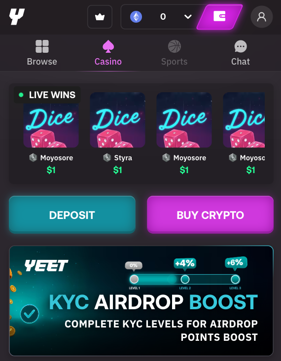 Yeet definitely has its own style and a clear vision of what a modern crypto casino should look like. By August 2025, Yeet reached $100M monthly wager. Then with a 5% margin = $5M GGR. That’s a very solid start 👏